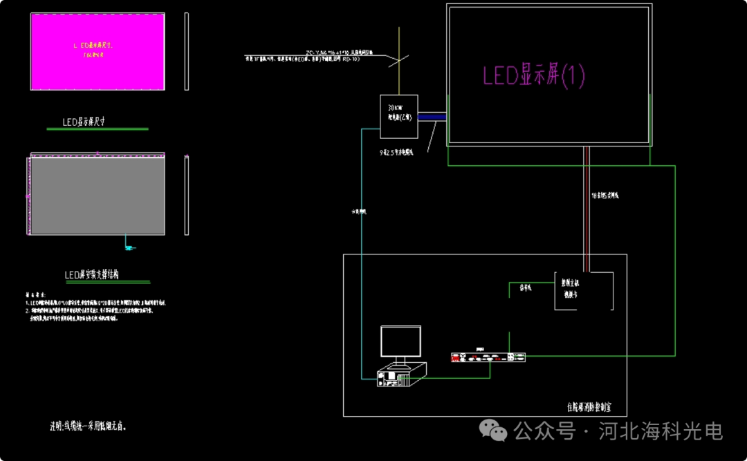 【收藏备用】LED显示屏日常所需的计算公式,附LED大屏的系统图及大样图