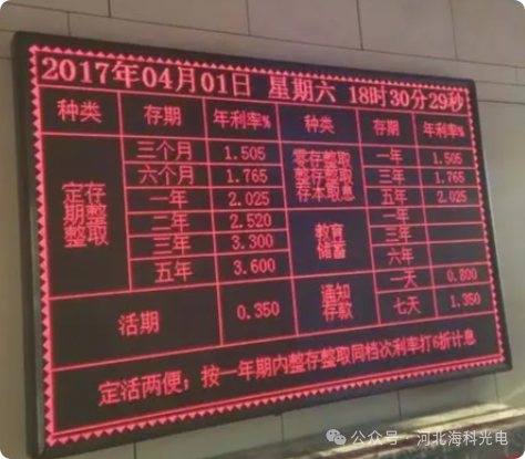 仅显示一种颜色(如红、绿、蓝或白色),常用于简单信息展示(如公交站牌、银行排队系统)。
